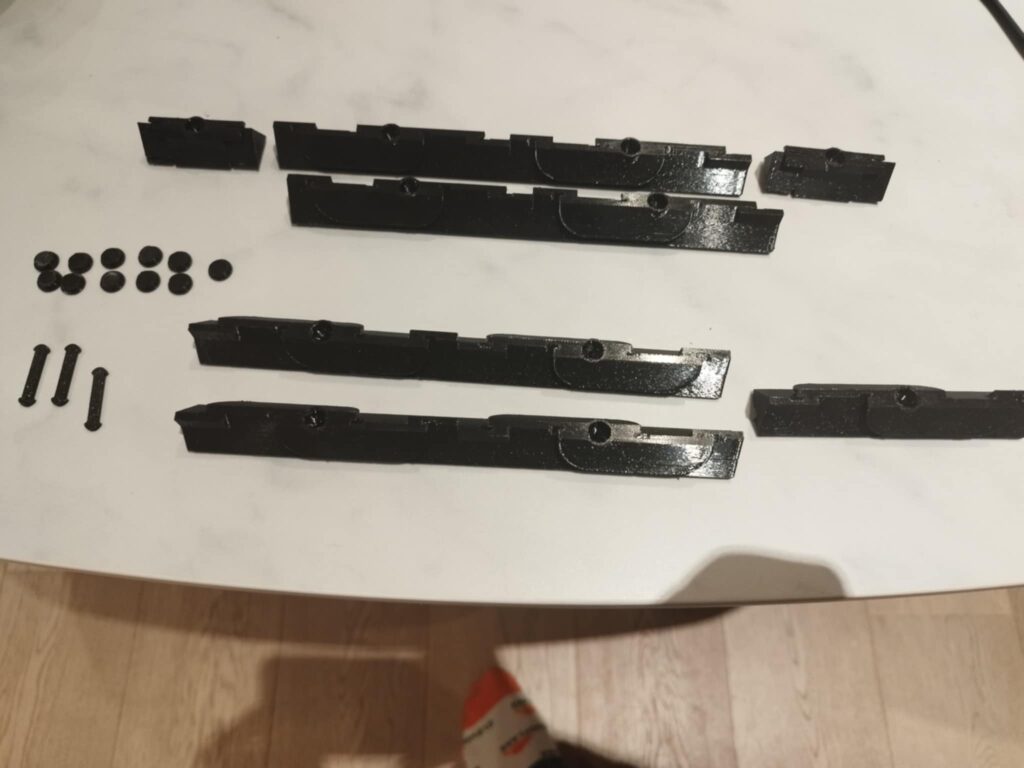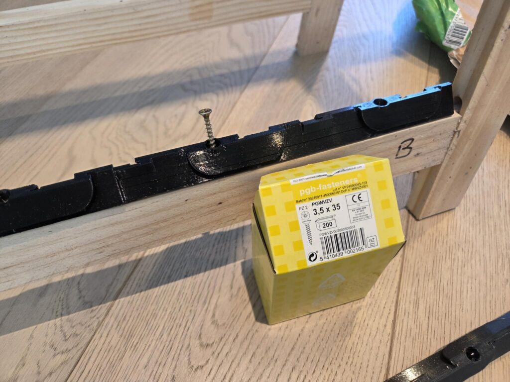De Kleine haakjes zijn zo voorzien dat de onderlinge delen in elkaar te haken zijn. Dit is géén must! Je kan de dele nook gewoon naast elkaar zetten op de schraag en schroeven.