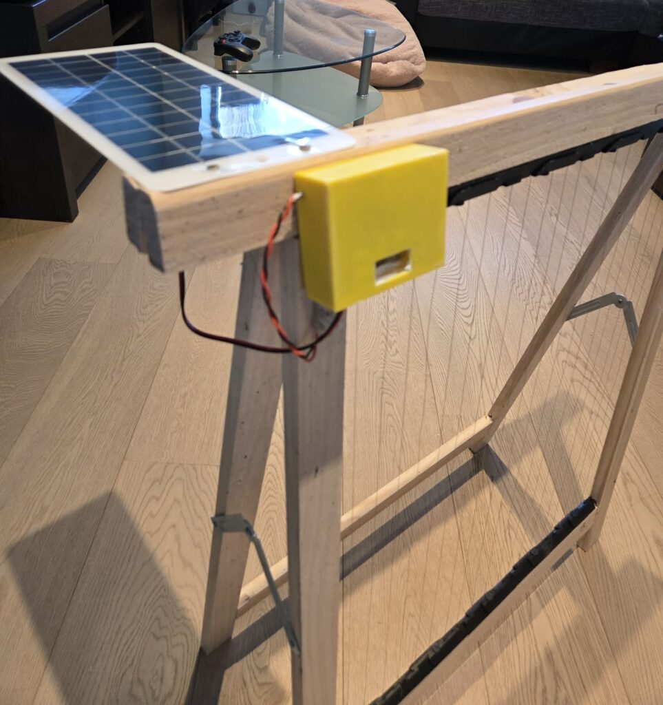 Zet nu alles in een doosje en maak waterdicht met wat silicone. Hou onderaan nog een gaatje of 2 extra zodat als er TOCH water in zou sijpelen dit lang sonder gewoon kan weglopen.